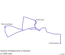 The Słupsk trolleybus system was a trolleybus network operated by MPK Słupsk in Słupsk, Poland, from 1985 to 1999.[2][3] The system measured at the most 19.1 km on three lines.