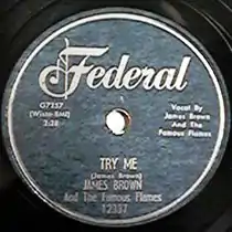 "Try Me", titled "Try Me (I Need You)" in its original release, is a song recorded by James Brown and the Famous Flames in 1958. It was a #1 R&B hit and charted #48 Pop—the group's first appearance on the Billboard Hot 100.[1] It was Brown and the Flames' second charting single, ending a two-year dry spell after the success of "Please, Please, Please".