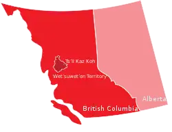 Location of Tsʼil Kaz Koh in traditional Wetʼsuwetʼen territory within British Columbia, Canada