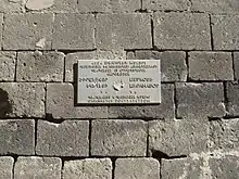 EU-sponsored information plaque with building description headed by wrong name at the 5th Century Church "Spitakavor" (Whitish)
