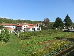 There are three cemeteries from the First World War in Tublje pri Komnu. They lie northwest of the village, close to Brje pri Komnu. The first cemetery lies next to the main road and contains the remains of about 2,300 soldiers.[4] The second cemetery lies about 200 metres (660 ft) west of the first and contains the remains of about 1,500 soldiers.[5] The third cemetery lies about 60 metres (200 ft) southwest of the second one.[6] A fourth cemetery is located northeast of these in neighboring Brje pri Komnu.[7]