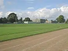 The school before the millennium, showing the original running track, K, Sixth Form and, design and technology blocks.