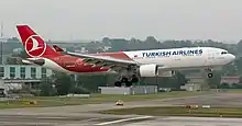 Around the same time, the commission also had to decide between the Boeing 737 Classics and the Airbus A320, with the latter being favoured by a slim margin. In the end, the Boeing 737 was chosen because the Airbus A320 had later delivery dates and new technical features that were difficult to fix in case a plane broke down at airports in Anatolia without adequate technical infrastructure. The company also didn't want to drift completely away from Boeing, with the majority of the airline's orders going to Airbus around that time.[50] An additional two Airbus A310s were delivered to the airline in 1990 and 1992, bringing the number of aircraft in its fleet to 32.[51] The Boeing 737 Classics were first delivered in 1991.[47] A further six Boeing 737-400 and two smaller Boeing 737-500s joined the fleet a year later in 1992.[52] The first Airbus A340-300 aircraft was delivered in 1993, which enabled the airline to fly to destinations in East Asia, such as Tokyo.[47] The fourth A340, registered TC-JDM, would become famous in the country for its strange unreliability, and was nicknamed Deli Mike.[53]