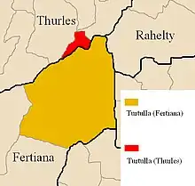 1. Thurles Civil Parish. However, the map on this web page is a little inaccurate, because it shows the wrong townland of Turtulla as belonging to the parish - there are actually two neighbouring townlands of this name, this one in Thurles civil parish and a neighbouring one which belongs to Fertiana civil parish.