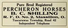 Pure bred registered Percheron horses - B.C. Shilling - Tuscarawas Township - 1915 advertisement