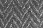 Twills can be divided into even-sided, warp-faced, and weft-faced. Even-sided twills have the same amount of warp and weft threads visible on both sides of the fabric. Warp-faced twills have more warp threads visible on the face side, and weft-faced twills have more weft threads visible on the face side.[2] Even-sided twills include foulard or surah, herringbone, houndstooth, serge, sharkskin, and twill flannel. Warp-faced twills include cavalry twill, chino, covert, denim, drill, fancy twill, gabardine, and lining twill.