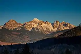 Twin Sisters Mountain (Nooksack: Kwetl’kwítl’ Smánit, "red mountain"),[3] commonly called the Twin Sisters, is a mountain in the U.S. state of Washington. Part of the Cascade Range, it lies just southwest of Mount Baker. Of its two main peaks, South Twin is higher, with a summit elevation above 7,004 feet (2,135 m).[lower-alpha 1][1] The summit of North Twin is above 6,644 feet (2,025 m).[lower-alpha 2][4] There are several glaciers on the northeast slopes of Twin Sisters Mountain.