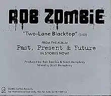 "Two-Lane Blacktop" is a song by Rob Zombie from his Past, Present & Future compilation album. The song is loosely based on the 1971 road movie Two-Lane Blacktop directed by Monte Hellman. The song was also featured in the racing game Need for Speed: Underground in 2003 and then again in the film Venom in 2005.