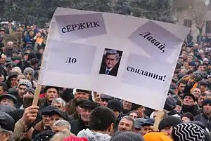 Poster with the crossed-out portrait of Armenian president Serzh Sargsyan with the famous line during the 2013 Armenian presidential election protests