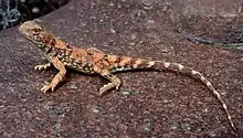 Tympanocryptis tetraporophora, also known as Eyrean earless dragon or long-tailed earless dragon,[2] is one of a documented species[3] of a relatively small dragon belonging to the genus Tympanocryptis.[4] Tympanocryptis is differentiated from other genera within the family Agamidae by a tympanum covered with scales and a missing phalange in the fifth toe of the rear foot.[5] T. tetraporophora is a ground dwelling dragon inhabiting semi arid regions of central New South Wales, arid regions of South Australia, Northern Territory, Queensland and tropical grasslands of Northern Queensland.[4]