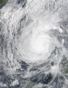 Typhoon Kammuri, known in the Philippines as Typhoon Tisoy, was a powerful typhoon which impacted the Philippines in early December 2019. Kammuri, which means crown or Corona Borealis in Japanese, the twenty-eighth named storm and sixteenth typhoon of the 2019 Pacific typhoon season, Kammuri developed from a tropical wave situated a couple hundred kilometers south of the Mariana Islands. From November 25 to 27, the system tracked westward at a steady pace and rate of intensification, first making minor impacts in Guam. On November 28, the system intensified into a typhoon as environmental conditions became marginally conducive for significant development. From November 29 to December 1, Kammuri was unable to strengthen to previous estimates due to its near stationary movement as a result of weak steering currents, upwelling itself consequently. On December 2, the system tracked westward at a much faster speed of 19 km/h (12 mph) and rapidly intensified over warm Philippine Sea waters, before making landfall in the Bicol Region of the Philippines at peak intensity as a category 4-equivalent typhoon.