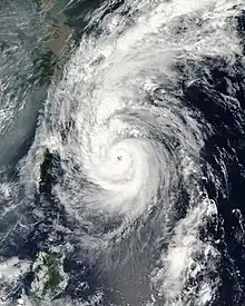 ![]() Khanun prior to peak intensity approaching the Ryukyu Islands on September 11 | |