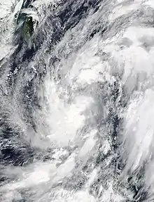 At 15:00 UTC on October 16, the Joint Typhoon Warning Center (JTWC) began tracking an area of atmospheric convection, or thunderstorms, approximately 463 nautical miles (857 km) east-southeast of Palau.[2] On October 18 at 21:00 UTC, PAGASA upgraded the system to a tropical depression, and named the system Pepito.[3] A few hours later, the Japan Meteorological Agency (JMA) also recognized the system as a tropical depression,[4] and subsequently issued their first warning.[5] On October 20, as the system intensified while approaching northern Luzon, the JMA upgraded the system into a tropical storm and named the system Saudel.[6] PAGASA followed suit later that day.[7] Saudel made landfall over the San Ildefonso Peninsula in Casiguran, Aurora on October 20 at 13:00 UTC (21:00 PHT) and began crossing Luzon, emerging over the South China Sea hours later.[8][9] As the storm left the Philippine Area of Responsibility, the developing system was upgraded to a typhoon by the JMA, the JTWC, and PAGASA in their final bulletin for the system.[10][11][12] Saudel continued to gain strength gradually, and during 3:00 UTC on October 23, it reached its peak intensity, with the JTWC estimating 1-minute sustained winds of 100 mph (160 km/h), making the system a low-end category 2 typhoon,[13] and a pressure of 965 mbar was estimated by the JMA. However, this intensity was short-lived, and at 9:00 UTC JTWC downgraded Saudel to a category 1 typhoon.[13] As it approached Vietnam, it began to rapidly weaken due to high vertical wind shear and was downgraded to a tropical storm on October 24.[13][14] The next day, it was downgraded to a remnant low as its center became mostly devoid of any deep convection.[15]