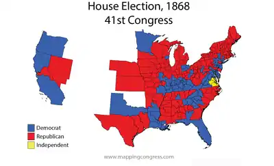 ![]() Map of U.S. House elections results from 1868 elections for 41st Congress | |||||||||||||||||||||||||||||||||||||||||||||||||||||||||||