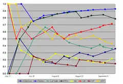 | 6 | 5 | 9 | .357[lower-alpha 1] | 8 | ||