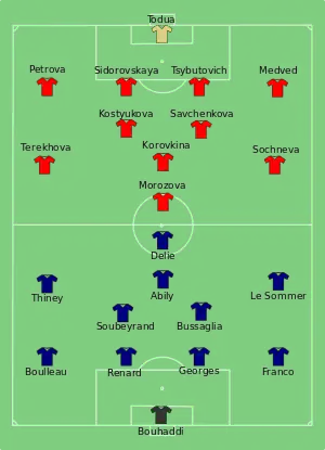 - 1 2 "Tactical Line-up – France-Russia" (PDF). UEFA.com. Union of European Football Associations. 12 July 2013. Retrieved 12 July 2013.