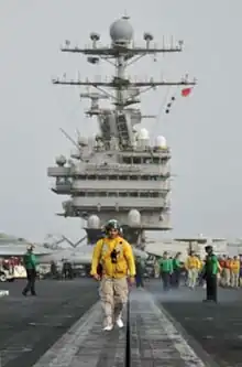 - ↑ Mass Communication Specialist Seaman Kathleen Corona, USN (13 February 2007). "Lincoln Flight Deck Readies for Operations". NNS070213-01. USS Abraham Lincoln Public Affairs. Archived from the original on 13 September 2007. Retrieved 27 December 2010.