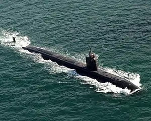 Armament4 × 21 in (533 mm) bow tubes, 10 Mk48 ADCAP torpedo reloads, Tomahawk land attack missile block 3 SLCM range 1,700 nautical miles (3,100 km), Harpoon anti–surface ship missile range 70 nautical miles (130 km), mine laying Mk67 mobile Mk60 captor mines