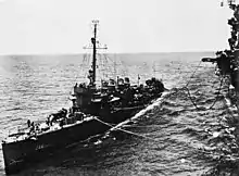 Bainbridge refueling from the aircraft carrier USS Hancock (CV-19) in 1944.