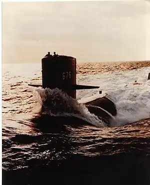 ![]() USS Billfish (SSN-676) early in 1971 (picture taken during first sea trial). | |