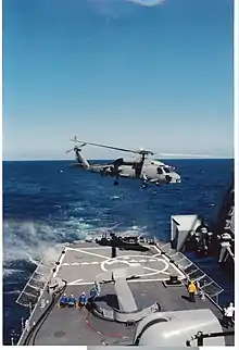 | Aircraft carried | Helicopter deck aft able to accommodate SH-2 Seasprite LAMPS Mk 1, SH-3 Sea King, or CH-46 Sea Knight helicopters. |