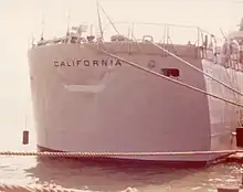 California suffered minor stern damage on 6 June 1977 when high winds in Norfolk harbor broke her moorings and the cruiser drifted in into the frigate USS Thomas C. Hart (FF-1092).[1]