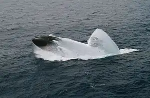 Columbus performing an Emergency main ballast tank blow in 1998