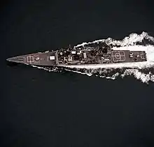 Cushing operated out of Yokosuka, Japan for the last several years of her career. Cushing was the last Spruance-class ship to remain in active service, until decommissioned and stricken from the Navy list on 21 September 2005. GlobalSecurity.org showed the ship listed for grant transfer to Turkey.[1] Ex-Cushing was sunk as a target on 14 July 2008[2] during RIMPAC 2008 along with USS David R. Ray, USS Fletcher (DD-992) and USS Horne (CG-30).[3]