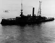 With no further use for the ship by 1919, the Navy decided to convert Coast Battleship No. 4 into a radio-controlled target ship. She was briefly struck from the Naval Vessel Register on 4 February 1920 before the order was reversed six days later. She was subsequently turned over to the captain of the battleship USS Ohio on 2 August.[12] Coast Battleship No. 4 was converted for radio control in Philadelphia, with a wireless receiver that could control both the steering and speed of the ship as well as pumps to control the boilers, which were replaced with oil-fired versions. She was then moved from Philadelphia to Hampton Roads under radio control, departing on 17 August without any crew aboard, her speed and course being directed from the deck of Ohio. Tests to determine the effectiveness of control from Ohio were conducted there through 10 September, when the Navy was informed of their success.[17][18]