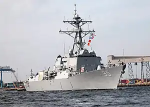 On 2 May 2006, James E. Williams deployed on her maiden deployment as part of the Global War on Terrorism Surface Strike Group (GWOT SSG) 06–2. James E. Williams joined with the amphibious transport dock Trenton and guided-missile cruiser Hue City as part of a surge deployment.[2] On 17 October 2006, James E. Williams completed her first deployment conducting anti-piracy operations off the coast of Somalia as part of the maritime security operations.