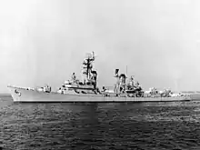 John King was laid down by the Bath Iron Works at Bath in Maine on 25 August 1958, launched on 30 January 1960 by Mrs. Paul J. Kilday, wife of Representative Kilday of Texas and commissioned on 4 February 1961; Comdr. Albert M. Sackett in command. John King was ordered as DD-953, reclassified as DDG-3 on 16 August 1956 and reclassified as DDG-3 on 26 June 1957. John King participated in blockade duties during the Cuban Missile Crisis in October 1962.[1]