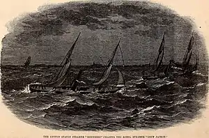 On 9 August Kennebec headed for the open sea for blockade and cruising duty in the Gulf of Mexico. From time she exchanged fire with shore batteries and shelled targets ashore. She helped capture schooner Jupiter 4 May 1863 and took schooner Hunter on the 17th. Steamer William Bayley fell prey to her 18 July. She shared in the capture of schooner Winona off Mobile, Alabama 29 November and she took schooner Marshall J. Smith laden with 260 bales of cotton 9 December. On the last day of 1863, she made a prize of steamer Grey Jacket after the blockade runner had slipped out of Mobile laden with cotton, rosin, and turpentine for Havana. She then took schooner John Scott after an 8-hour chase 7 January 1864.