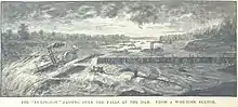 Lieutenant Bache succeeded in getting Lexington over the upper falls, then steered her directly for the opening in the dam where the furiously raging waters seemed to promise only her destruction. She entered the gap in the dam with a full head of steam and pitched down the powerful torrent with several heavy rolls, hung for a moment on the rocks below, then reached the calm, deep water to the ringing cheers of some 30,000 voices. She was soon followed by the remainder of the vessels and the Union's valuable fleet was saved.