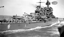 Maryland now joined the Operation Magic Carpet fleet.[15] During the remaining months of 1945, Maryland made five voyages between the west coast and Pearl Harbor, returning more than 8,000 servicemen to the United States. Arriving at Seattle, Washington on 17 December, Maryland completed her Operation Magic Carpet duty. She entered Puget Sound Naval Shipyard on 15 April 1946, and was placed in commission in inactive reserve on 16 July.[15] She was decommissioned at Bremerton on 3 April 1947, and remained there as a unit of the Pacific Reserve Fleet. Maryland was sold for scrapping to Learner Company of Oakland, California on 8 July 1959.[4]