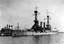 USS Minnesota (BB-22), the fifth of six Connecticut-class pre-dreadnought battleships, was the first ship of the United States Navy in honor of the 32nd state. She was laid down at the Newport News Shipbuilding Company of Newport News, Virginia in October 1903, launched in April 1905, and commissioned into the US fleet in March 1907, just four months after the revolutionary British battleship HMS Dreadnought entered service. Minnesota was armed with a main battery of four 12-inch (305 mm) guns and a secondary battery of twenty 7 and 8 in (178 and 203 mm) guns, unlike Dreadnought, which carried an all-big-gun armament that rendered ships like Minnesota obsolescent.