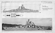 - ↑ The only US battleship class after Nevada that did not feature these "triple turrets" was the Colorado class, which carried eight 16 in (410 mm) guns in dual turrets to combat the new Japanese Nagato class.