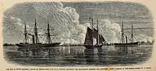 Pawnee spent the first three months of 1861 in Washington, D.C., and was sent on an expedition to Charleston, South Carolina 6 April to relieve Major Robert Anderson's garrison at Fort Sumter. Delayed by a severe storm, she arrived only to find that the Fort had been surrendered to Confederate forces. She returned to Washington and was immediately dispatched to Norfolk to secure the ships and stores of the Gosport Navy Yard.[2] Arriving at Norfolk the night of 20 April, she found that all ships, save USS Cumberland, had been scuttled, so an attempt was made to destroy the Naval stores and the dry dock.[2] Their efforts were largely unsuccessful, but she assisted the tug Yankee, which towed the frigate Cumberland out of the Yard and saved the ship.[3]