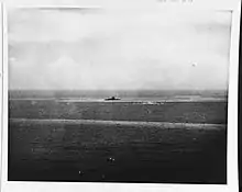 After arriving at Manus, Petrof Bay was assigned to Task Unit 77.4.5, the Reinforcement Carrier Group, and she was yet again under the flag of Rear Admiral Henderson. During her stay at Manus, Captain Ralph Sperry Clarke took over command of the vessel. She departed Manus Harbor on 19 November, arriving in the traffic lanes leading to Leyte on 23 November, whereupon she began operations providing air cover for convoys proceeding to and departing from the Philippines, a task necessary due to the convoys being harassed with irritating frequency by Japanese aircraft based on Mindanao. She continued these operations until the end of the year, when she was detached from Task Group 77.3, and joined up with Task Force 79, Vice Admiral Theodore Stark Wilkinson's Lingayen Attack Force, in support of the Invasion of Lingayen Gulf. She provided air cover for the attack transports of the task force as they proceeded to Lingayen Gulf, and gave close air support as they landed.[26] The task force came under intense kamikaze attack as it proceeded up the South China Sea to northern Luzon, sinking her sister Ommaney Bay on 4 January 1945, and damaging several other carriers. This forced Petrof Bay into assuming double duty, taking on some of their assigned tasks.[27]