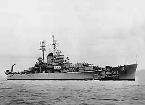 The third USS Rochester (CA-124), an Oregon City-class heavy cruiser, was laid down 29 May 1944 by Bethlehem Steel Co., Quincy, Massachusetts; launched 28 August 1945; sponsored by Mrs. M. Herbert Eisenhart, wife of the president of Bausch & Lomb Optical Co., Rochester, New York; and commissioned 20 December 1946 at the Boston Navy Yard.