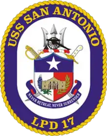 USS San Antonio (LPD-17), the lead ship of her class of amphibious transport dock or landing platform dock, is the first ship of the United States Navy to be named for the city of San Antonio, Texas.