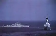 Vishnya-class intelligence ship SSV-535 Kareliya and USS Texas (CGN-39) in 1988