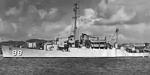 On 24 June 1963, Truxtun's name was cancelled in order that it might be assigned to the new guided-missile frigate USS Truxtun (DLGN-35). For the 18 months remaining in her U.S. Navy career, she was identified simply as USS APD-98. On 22 November 1965, APD-98 was sold to the Republic of China under the provisions of the Military Assistance Program. Two months after the sale, on 15 January 1966, APD-98 was stricken from the Navy List.