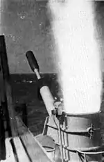 Following these strikes, TF 58 proceeded to Okinawa to support the amphibious assault launched there on 1 April 1945. While alone on picket duty 12 miles from the main group, Walker was subjected to persistent Japanese kamikaze attacks. One plane dropped a torpedo just after dark which passed close astern. During that night, Walker's agile maneuvers and accurate guns beat off three more such attacks. On 7 April 1945, Paul Klahr, Gun Captain of 40 mm Gun 43 (starboard midship position), vividly recalls that a Zeke fighter circled the stern and began diving for the bridge from the starboard side of the Walker. The Zeke passed forward of Klahr's gun position by about 20 feet allowing him and his crew to see the face of the pilot. He remembers the pilot's look of fear, facing his impending death. One member of his gun crew actually threw his helmet at the plane as it passed. The plane flew over the ship between the positions of the five inch guns Gun 1 and Gun 2 at an altitude low enough to part the lifelines on the port side before wheeling into the ocean and exploding, sending a solid sheet of water over the Walker mixed with debris from the plane and the shredded remains of its pilot.