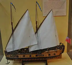 two row-gallies be forthwith built and equipped at the expense of the colony, for its protection and defense; that they be of suitable bigness to carry sixty men, each; to row with fifteen oars on a side, and to mount one eighteen, pounder in the bow, and a number of swivel guns; and that they be built in such further and particular form, model and construction as shall be judged most fitting, by the committee hereafter named, for answering the design and purpose of their building. And that Ambrose Page, Esq. be the person for the above purpose, and that he be empowered to draw out of the general treasury, a sum not exceeding £-300, to enable him to prosecute the building. In October following, Ambrose Page, Esq., was requested to procure the two row-gallies belonging to the colony, to be immediately completed fit for service; and that he draw out of the general treasury the sum of £100, lawful money, for the purpose aforesaid.[1]