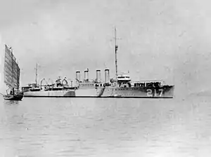 Whipple spent the next decade with the Asiatic Fleet, watching the rising ascendancy of Japan over China and the Far East. She resumed the routine common to ships of her type with the Fleet: winter exercises in the Philippine Islands and summer maneuvers out of Tsingtao, China, with cruises to Chinese coastal ports in the interim. On 8 February 1932 she collided with the British steamer Rosalie Moller in the Yangtze at Shanghai, China, and suffered severe damage.[1]