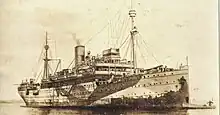 The ship had twin screws, each driven by a three-cylinder triple-expansion steam engine. The combined power of her twin engines was rated at 953 NHP[4] or 5,800 ihp, and gave her a speed of 14 knots (26 km/h).[5]