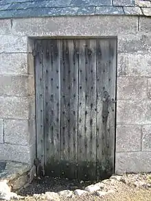 A group of 15 local gentlemen held a meeting in Udny Green on 21 January 1832 to discuss constructing a vault within the churchyard to hold dead bodies until they could be buried. Agreement was reached and a decision was made to use a plan that had been submitted by John Marr of Cairnbrogie.[3] Formally adopted the following week, an advertisement was placed in the Aberdeen Journal on 15 February 1832[4], inviting tenders for the construction of the mort house. Applications were also invited from potential subscribers to use the facility.[3] The contracts to undertake the building work were awarded on 17 March 1832; however, difficulties were encountered collecting the subscriptions (which were to be used to cover the building costs), so the plans were altered to reduce costs. Construction was to be completed by 1 September 1832 but was delayed after arguments took place with the mason. The contractors received final payments on 26 January 1833 and the formal "Regulations for the management of the vault at Udny" were agreed on 23 February.[3] The regulations are likely to be similar to those applied to other mort houses, although records of other structures are not generally available. Rules included stipulations as to the construction of coffins, which had to be made from well-seasoned fir 78 inches thick and completely air-tight. Additionally, any bodies considered to be "infectious or otherwise dangerous" had to be wrapped in tin plate or lead. A penalty of two pounds was levied on the maker of a coffin that did not conform to the requirements.[3]