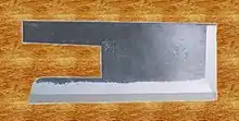 The udon kiri (うどん切), soba kiri (そば切 or 蕎麦切り包丁), and kashi kiri are a group of specialized knives used in the Japanese kitchen to make udon and soba noodles respectively. The udon kiri is also sometimes called menkiri bocho (麺切り包丁), and is distinguished from the Soba and Kashi kiri knives by a blade that drops in to cover less than half of the length of the handle rather that reaching the end of the handle like the soba. The soba kiri is characterized by a long blade that spans down the full length of the handle whereas the blade of the Kashi kiri only curves to meet the top of the handle. To make soba or udon the dough is flattened and folded, and then cut with the menkiri bocho to produce long rectangular noodles. For this purpose the menkiri bocho has a straight and long cutting edge to cut the noodles straight to the board. The knife is usually heavy to aid in the cutting of the noodles, usually with a slight forward motion.