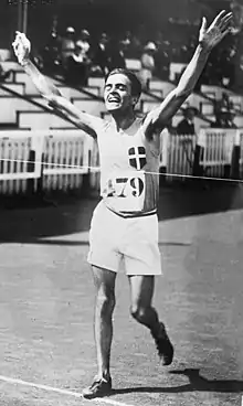 ![]() Frigerio winning the 10 km walk at the 1920 Olympics | |