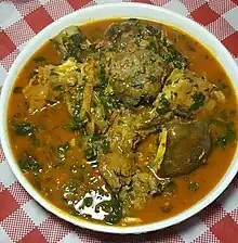 Ukazi or Okazi soup is an Igbo soup similar to Afang soup of the Efik tribe; the difference between the two is that okazi is thicker than Afang aside the peculiarity to each tribe.[1] The soup is made majorly from two leaves: okazi and water leaf.[2]